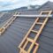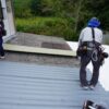 荷揚げをするころにはすっかり屋根全体が乾いて予定どうり荷揚げもできました。引き続き屋根本体の施工作業も問題なく進みこの日のうちに取付完了しました。