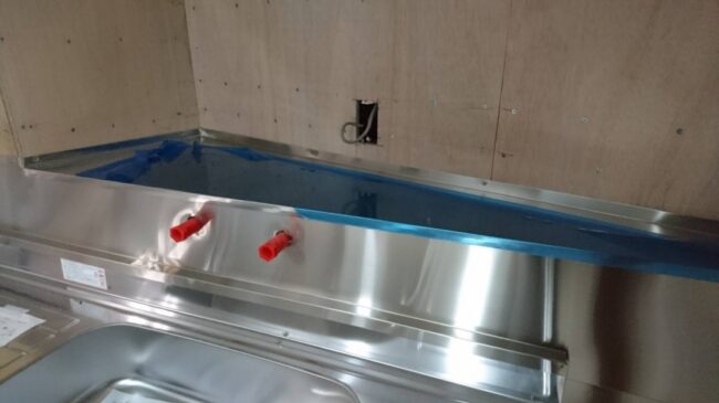 施工前のコンパネ下地の状態です。 壁の形状や長さ、水じまい、張り合わせるつなぎ目や切り口の角等の安全性など色々な要素を考慮して、どこまでを一体でとるか、どこでどのように目立たずに安全につなぎ合わせるか、など…