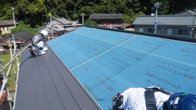 宿毛市のカンゴウ式タテヒラの棟を施工中。