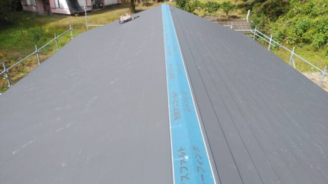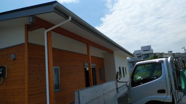 愛媛県愛南町の二階建ての住宅で、スレートひら瓦屋根をそのままではがずにアイジースーパーガルテクトでリフォーム工事をしました。 もともとついてあるムネやよせムネなどの下地の木材や屋根からでっぱるものは取り外…