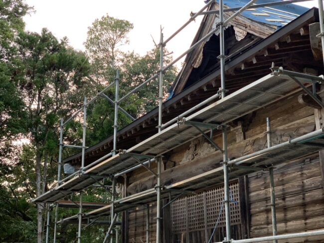 しまんと市で老朽化して雨漏りなどしていたお宮の瓦を撤去して、新しくガルバリウム鋼鈑製ヨコブキに屋根がえする作業に取りかかりました。 地元近辺の大工さんが元請けで,やね瓦を撤去、下地を修繕工事していただいたあとにミウラルー…
