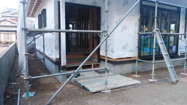 とりあえず2階部分の破風板から施工しました。取り付ける施工の順番としてはまず高い階数の場所からで、もしもなにかの原因で全部仕上げるのが足場の撤去に間に合わなくなっても、高い所を済ましておけば何とかなるからです。その水下に…