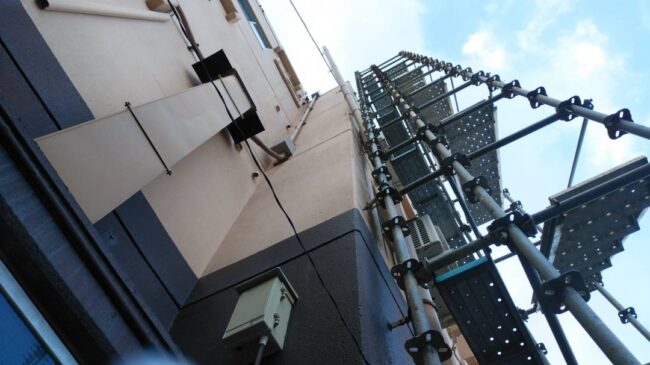 最初見上げたときビックリです、今にも倒れそうでした。しかしレッカーや高所作業車も入れない場所でした。そりドイ高し とりあえずあの外側に大きく反ったタテドイを足場の届く範囲から切断した時にどうやったら安全…