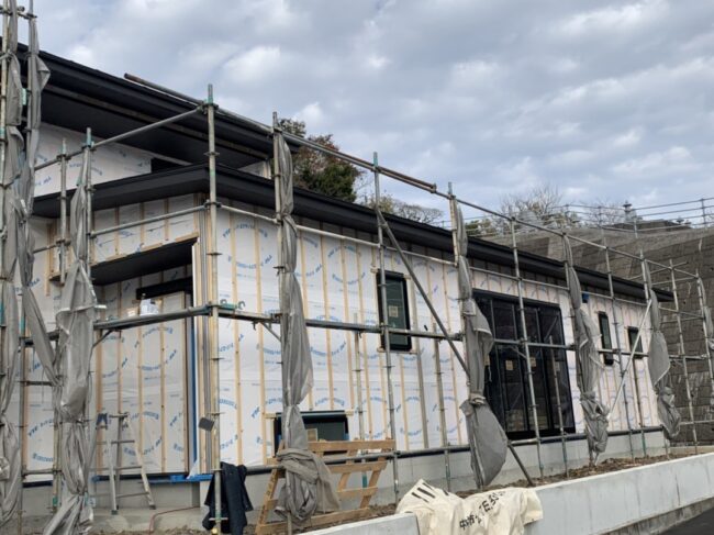 この新築の屋根はヨコブキに似たエバールーフというタイプの屋根で、ヨコブキよりも重なりの部分の段差が高くなり鋼鈑製の屋根に少し厚みが付いたように見える特徴があります。何日か前に自分たちが施工させていただきました。 &…