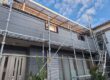 家の本体のヨコブキの工事はもう少し前に完了していましたが、他の部分の工事がまだたくさんのこっていました。屋根がカベに付いた部分の古くなった立ち上げの水切りも上から新しい水切りを施工しています。玄関の屋根は形状を大工さんが変更しなおしてそこによせ棟のヨコブキを施工しました。