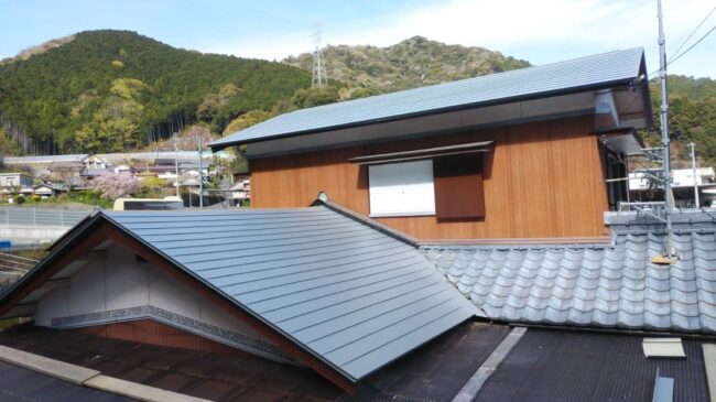 宿毛市で瓦ぶきの屋根をはいだ所にガルバリウム製ヨコブキを施工する工事がはじまりました。瓦の撤去作業はいつもお世話になっている瓦屋さんがすでに作業ずみで、瓦をはいでヨコブキを施工するためにはそのままの下地では…