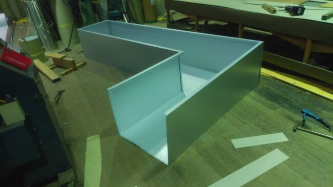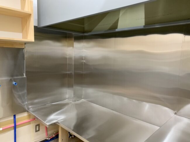 大月町の飲食店のオーナー様から直接依頼されて厨房の換気扇用フードを作成中です。 材料はガルバリウム鋼板の原版で無塗装品です。ステンレス製に比べると加工がしやすいです。 今回のフードは厨房の内コーナーの壁面にL字型につない…
