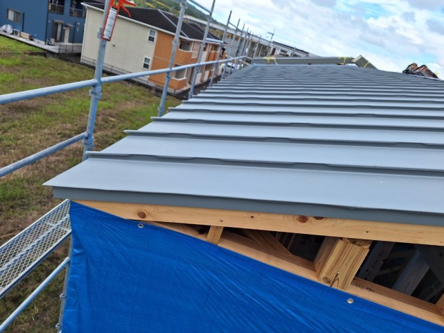 新築二階建てのキリヅマの屋根にタテヒラぶき屋根を施工しました。