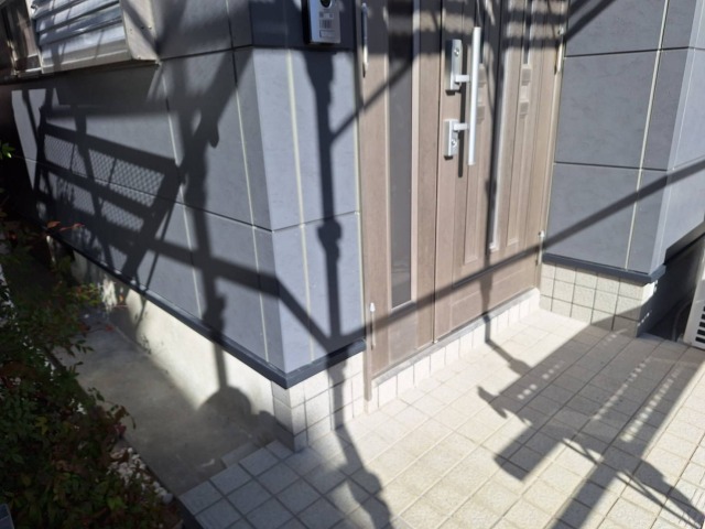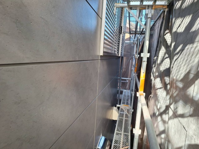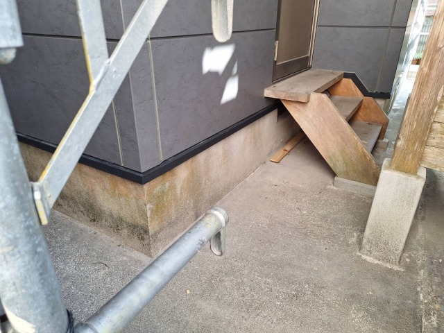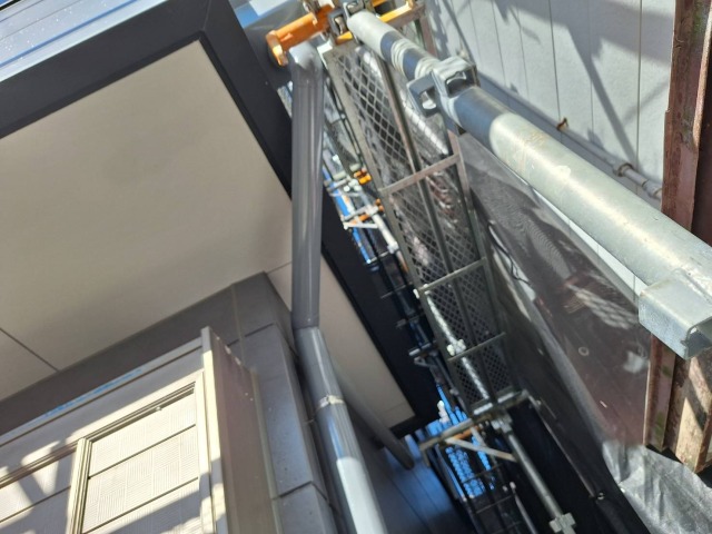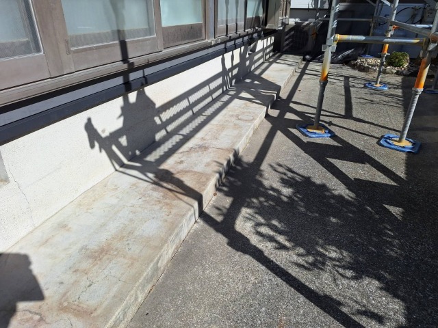 次にはベランダの外側の外壁のした小口にオーバーハングの水切りを施工させていただきました。