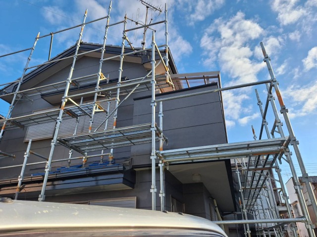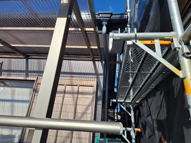 これまでの作業で足場が必要な箇所の作業は終了しました。低い所にもう一か所小さい屋根を施工する所が残っています。