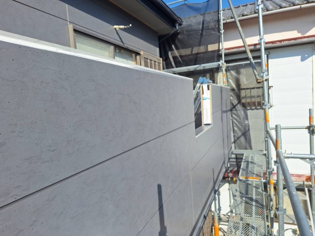 宿毛市の住宅で、老朽化して雨漏りなどが起こりだした窯業系サイディングを、いつもお世話になっている建設会社様がリフォームしている現場の板金の水切りなどを施工させていただきました。