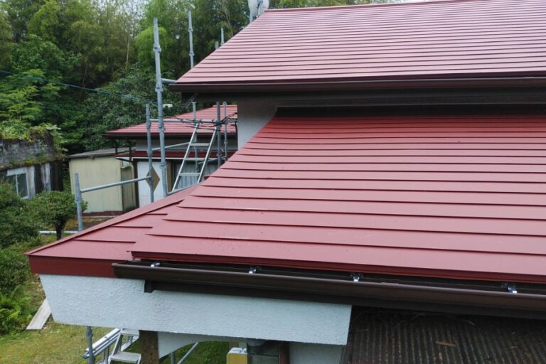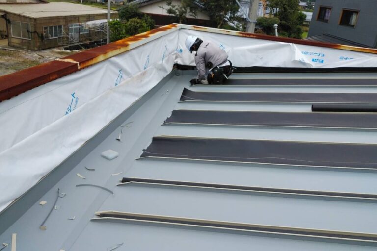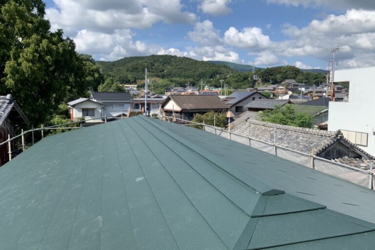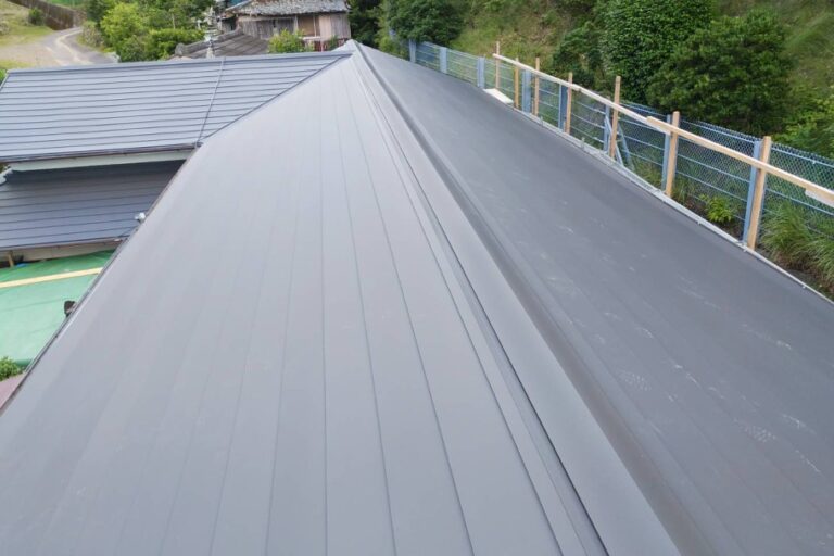 愛媛県愛南町の二階建ての住宅で、スレートひら瓦屋根をそのままではがずにアイジースーパーガルテクトでリフォーム工事をしました。 もともとついてあるムネやよせムネなどの下地の木材や屋根からでっぱるものは取り外…