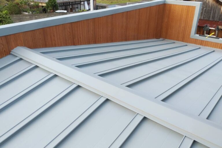 タテヒラぶき屋根の施工を終了してからしばらくして、今回は工務店さんが木材で下地処理をしたハフ板をマットシルバーという色のガルバリウム鋼鈑の材料厚みが0.4を使用して施工しました。 この工務店さんから依頼される新築屋根…