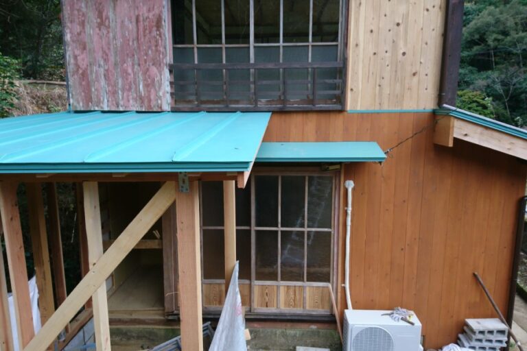 瓦屋さんが瓦屋根の葺き替え工事をするために瓦を剥いだ機会に、一緒に破風板をガルバリウム鋼板で包むことになったようです。 通常は先に瓦を葺いている状態で袖瓦の下から瓦を緩めたりして鋼板を差し込むことが多いですが、今回は袖瓦…